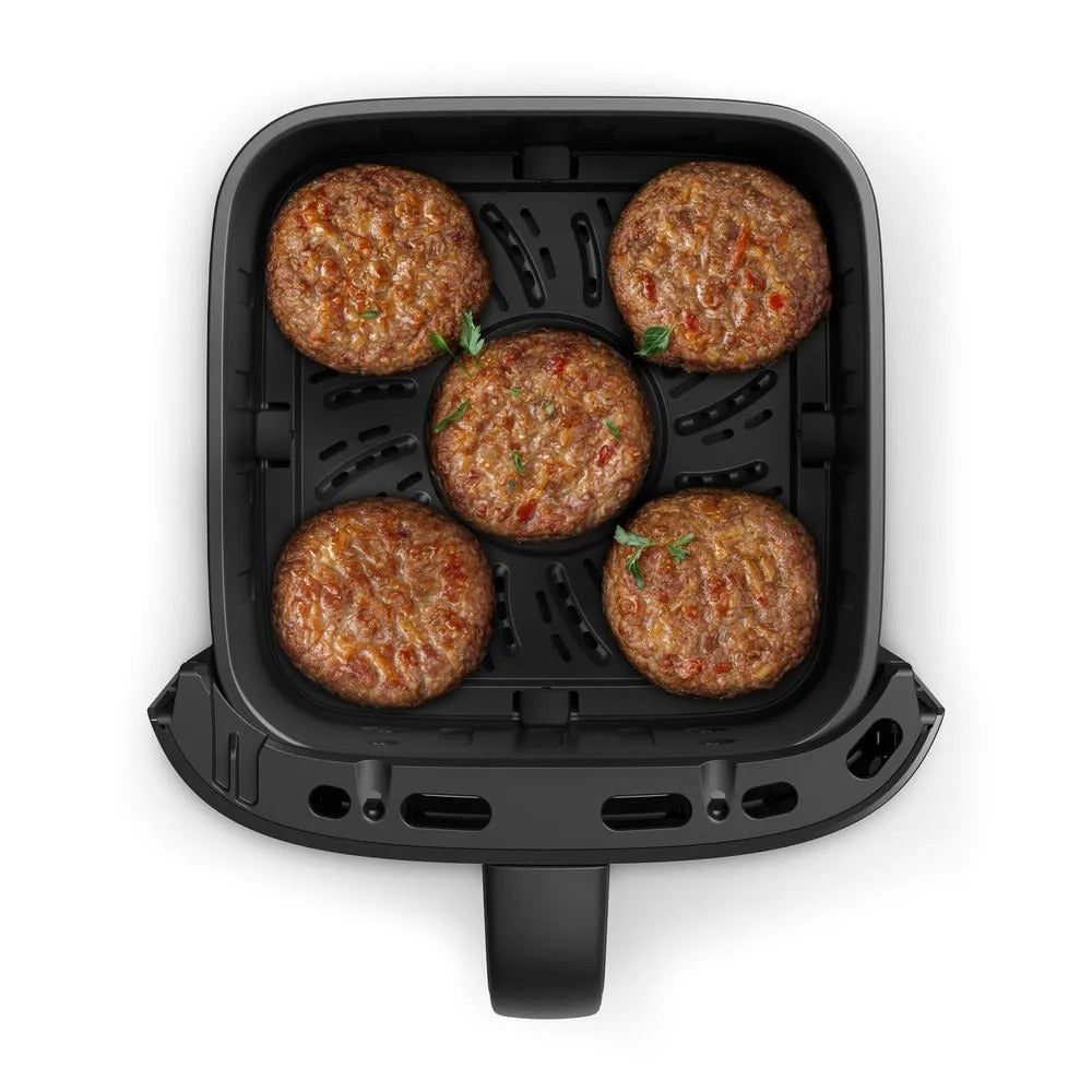Com capacidade de 3 litros, a EAF05 conta com grade removível com dupla camada antiaderente, facilitando a limpeza e a remoção dos alimentos. Sua tecnologia Air Cooking 360° garante circulação uniforme do ar quente, deixando os alimentos crocantes por fora e macios por dentro.
