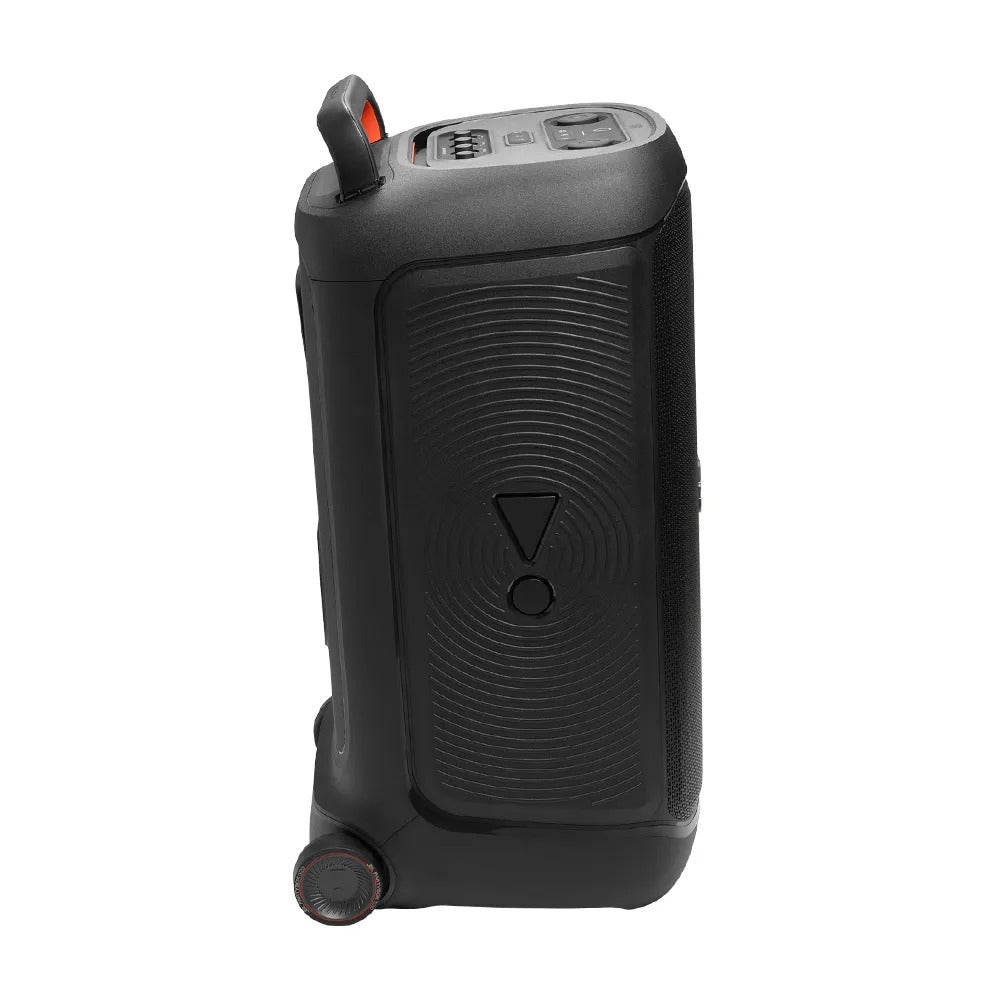 Com alça telescópica e rodas resistentes, é fácil de transportar. A PartyBox 520 BR também é resistente a respingos (IPX4), feita com plástico reciclado e embalagem certificada pelo FSC. Conecte múltiplas caixas via Auracast™ e controle tudo pelo aplicativo JBL PartyBox.