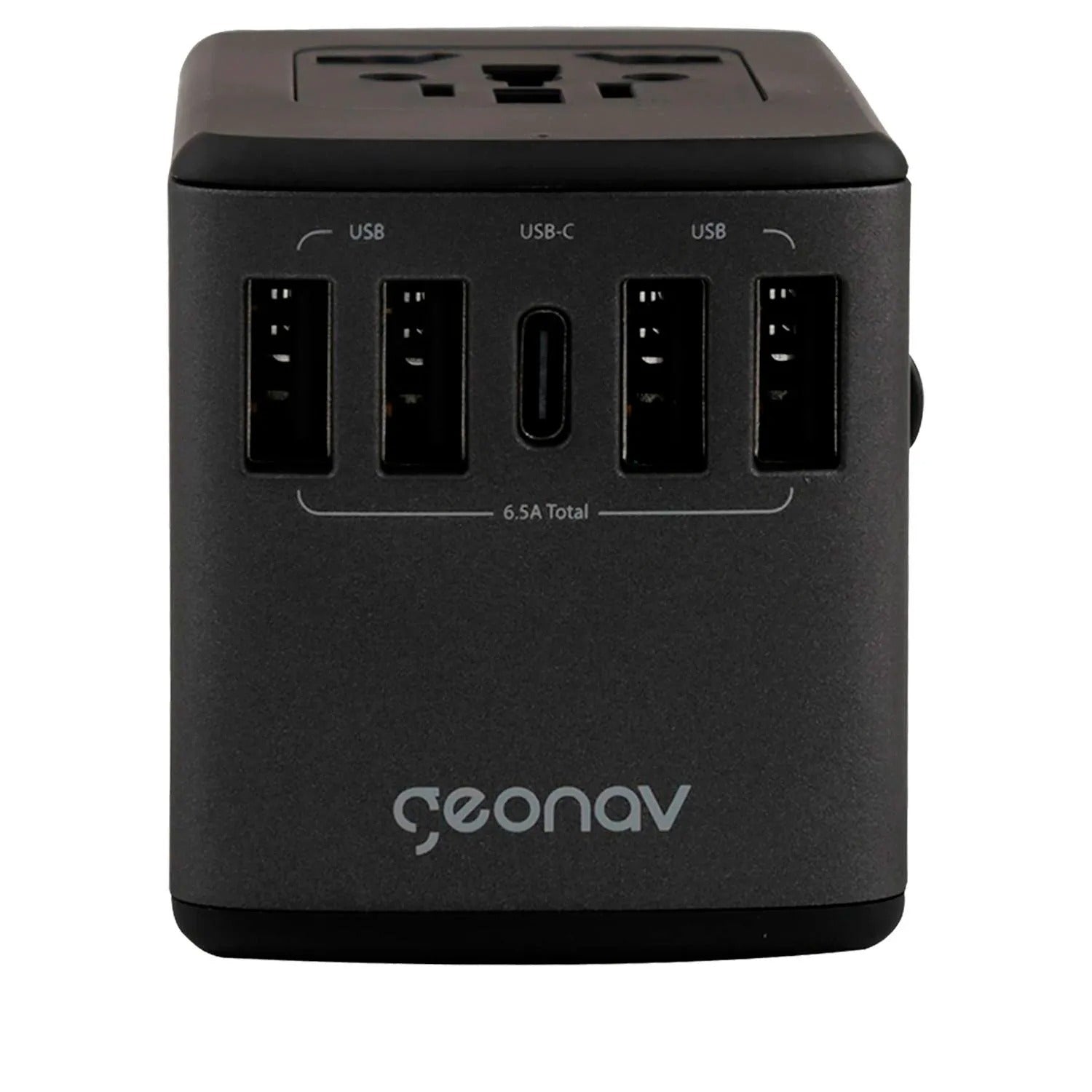 Carregador Universal com Adaptadores de Viagem USB + USB-C – Geonav TLCH65BK