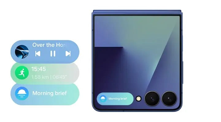 O Galaxy Z Flip7 é o smartphone dobrável mais fino da Samsung, com design refinado e portabilidade aprimorada. Sua Tela Flex de 4,1" e Tela Infinita de 6,9" oferecem uma experiência visual imersiva, combinando estilo com inteligência artificial integrada.