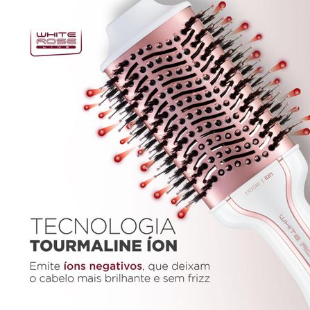 A praticidade da escova com o poder do secador! A Escova Secadora White Rose ES-50 é a 3 em 1 que vai mudar a sua rotina: você seca, alisa e modela os cabelos com apenas uma mão. O produto também possui revestimento cerâmico com Tourmaline Íon, tecnologia que emite íons negativos e fecha as cutículas dos fios, deixando-os mais macios e brilhantes. Saiba mais sobre a Escova Secadora da Mondial: