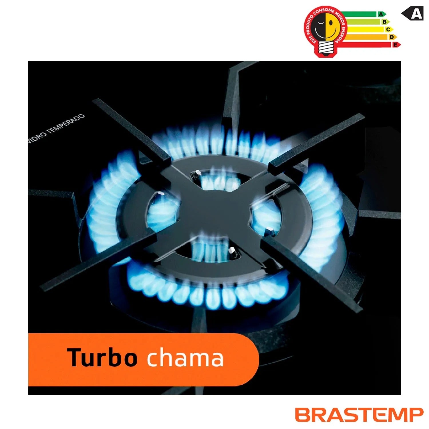 Fogão Brastemp 5 Bocas Preto com Turbo Chama com Mesa de Vidro - BFS5VCE