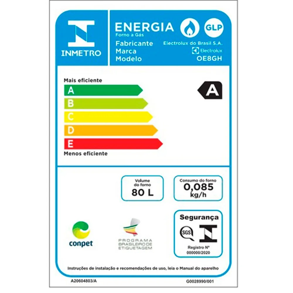 Forno de Embutir a Gás Electrolux OE8GH 80L com Grill e Painel Touch