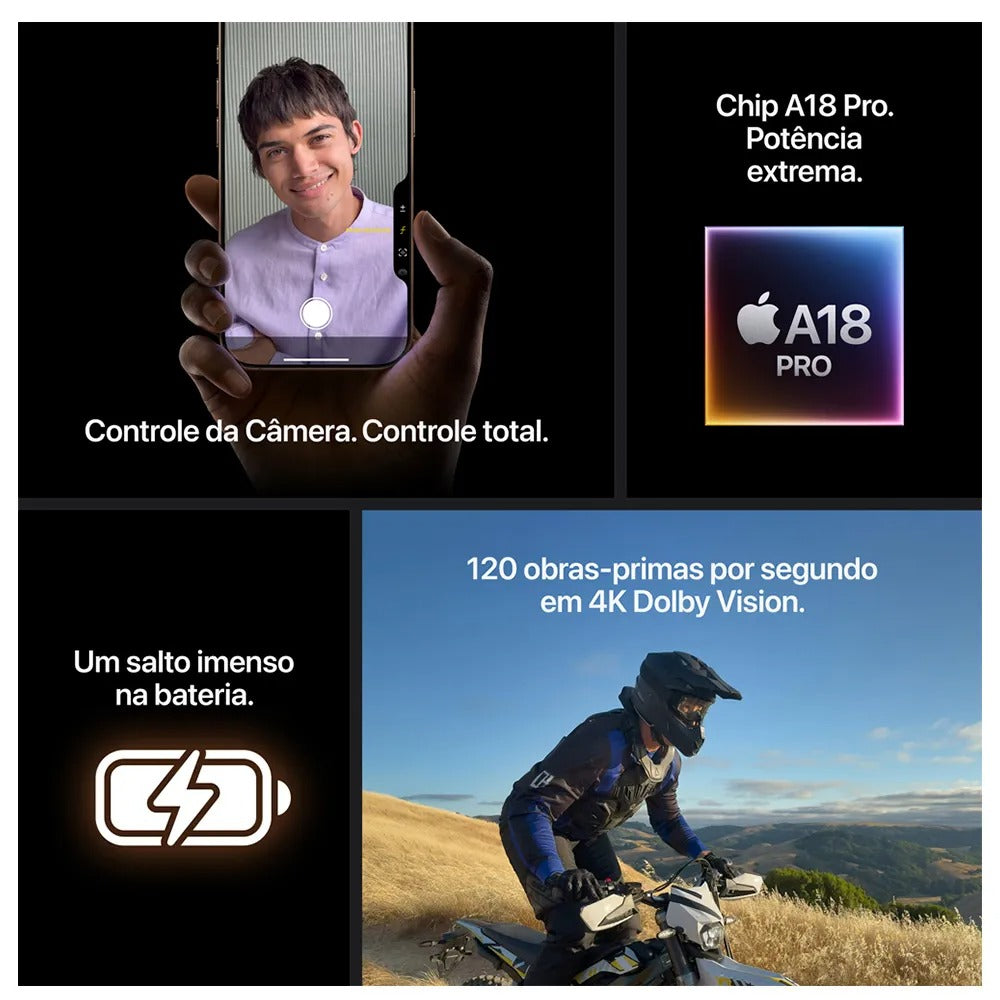iPhone 16 Pro Apple (256GB) Titânio Natural, Tela de 6,3", 5G e Câmera de 48MP