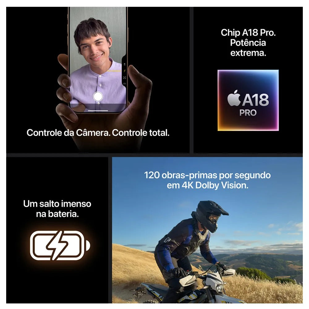iPhone 16 Pro Apple (256GB) Titânio Preto, Tela de 6,3", 5G e Câmera de 48MP 256GB